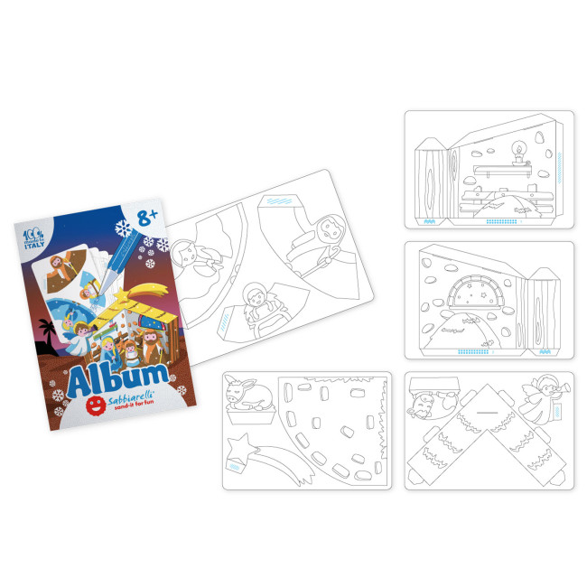 La stampa con laseratura viene fatta a diversi livelli di incisione per facilitare il distacco dei singoli elementi dai fogli adesivi e la rimozione della pellicola prima di colorare con la sabbia.