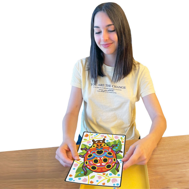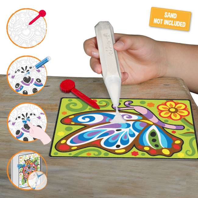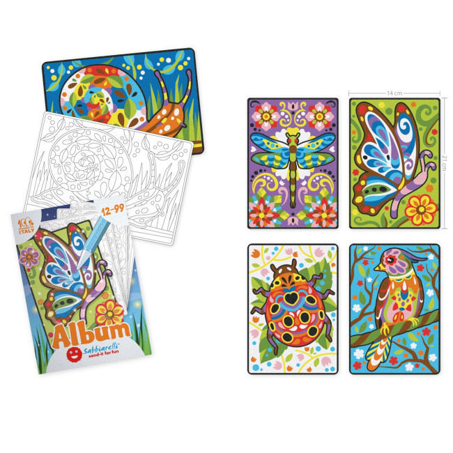 Colorare con la sabbia è un’attività dalla quale anche gli adulti possono trarre grandi benefici per la salute fisica e mentale. Attraverso il sandpainting con i Sabbiarelli si allena la motricità manuale, perché si richiede di rimuovere la pellicola dai disegni usando lo spellicolino e di maneggiare le penne per dosare la sabbia quando si colora. Ma la stimolazione sensoriale è legata anche al tipo di pittura che caratterizza il sandpainting, cioè la pittura materica, fatta direttamente con le dita. La sensazione che si prova colorando con le dita, premendo i granelli di sabbia finissima per farli aderire bene agli inserti adesivi del disegno, è piacevole ed appagante. La speciale sabbia di marmo dei Sabbiarelli è morbida al tatto, e questa sua peculiarità la rende particolarmente adatta proprio per essere massaggiata con la mano, senza l’uso di pennelli. Vi sono poi altri aspetti positivi legati a questa speciale tecnica di colorazione. La sequenzialità delle operazioni richieste per colorare con la sabbia aiuta a recuperare la calma e a ridurre lo stress. La necessità di prestare di attenzione e concentrazione permette di interrompere il flusso di pensieri e di entrare in uno stato di benefico rilassamento. Infine, il sandpainting con i Sabbiarelli migliora l’autostima, perché implica un obiettivo e il suo raggiungimento è gratificante. I disegni colorati con la sabbia di marmo dei Sabbiarelli sono veri e propri quadri, perfetti grazie alla laseratura che incide i fogli in modo da poter colorare ogni singola parte del disegno senza sconfinare in quelle adiacenti e alla speciale sabbia luccicante dei Sabbiarelli, che proviene dal marmo bianco di Carrara ed è naturalmente scintillante. Con i Sabbiarelli il mondo della creatività e quello della meditazione trovano un punto di incontro ideale, sia per coltivare la propria vena artistica, che per staccarsi, anche solo per qualche ora, dai problemi della quotidianità.