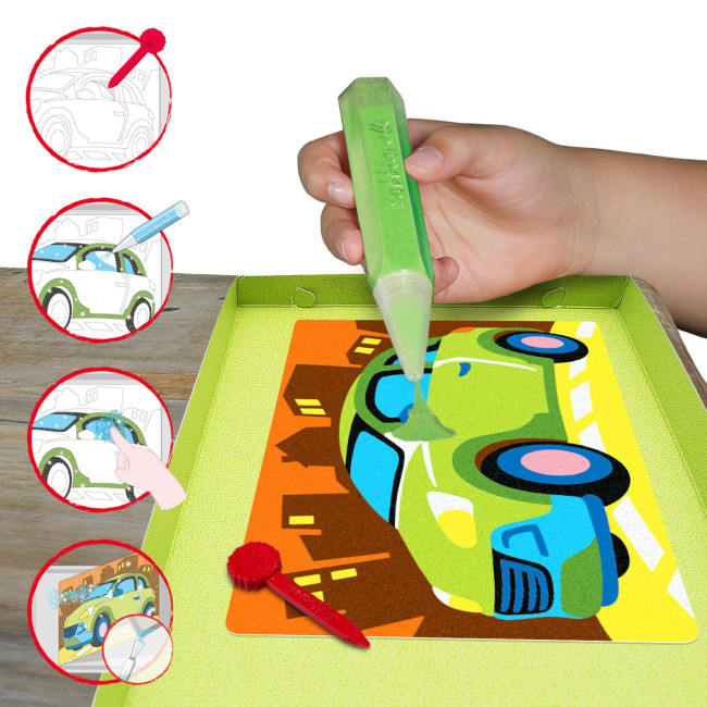 Grazie alle speciali penne Sabbiarelli, colorare con la sabbia è un'azione alla portata di tutti: i piccoli artisti possono liberare la loro creatività nella colorazione, seguendo l'esempio colore o scegliendo nuove combinazioni o ancora creando nuove sfumatore di colore mischiando tra loro le sabbie, senza sprechi.