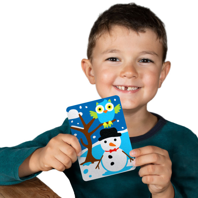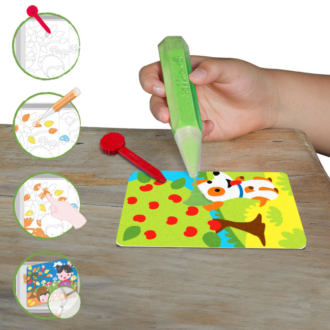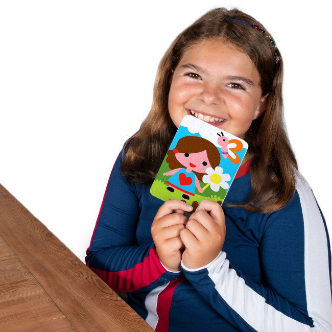 After colouring the cards of the game with sand, children will be able to play "how to place the character in the right scenario", associating the correct clothing to be worn for each season.