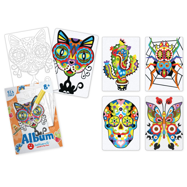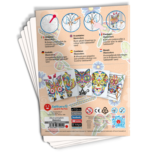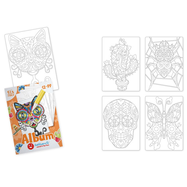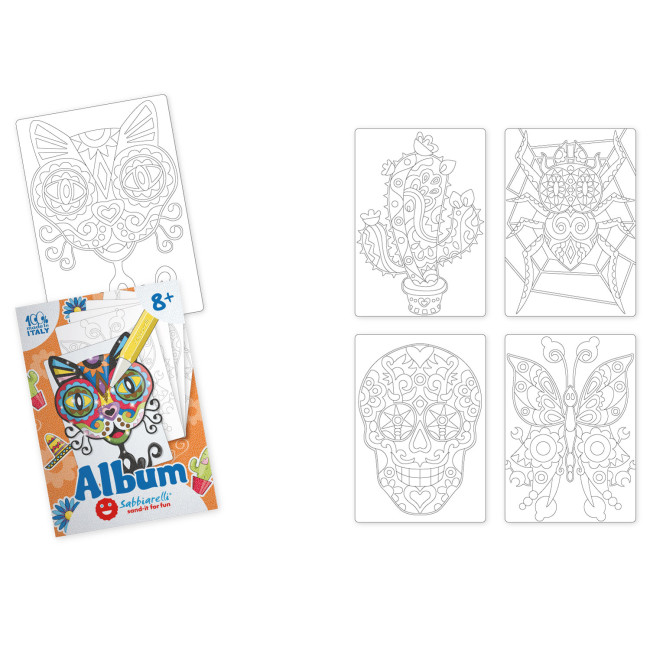 An album with drawings and decorations inspired by the colours of the Mexican tradition of Day of the Dead, which impresses children with the elegance and intertwining of its shapes. A game of colours and spaces that will catch the attention of those who colour and those who will then admire the finished works, perfect to be framed and hung.
