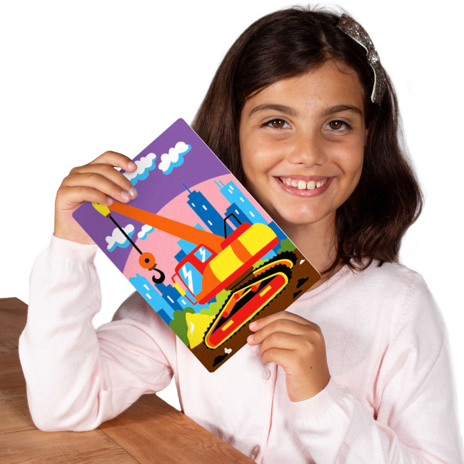 Sand colour your work equipment and with imagination build your own construction site. Have fun!
