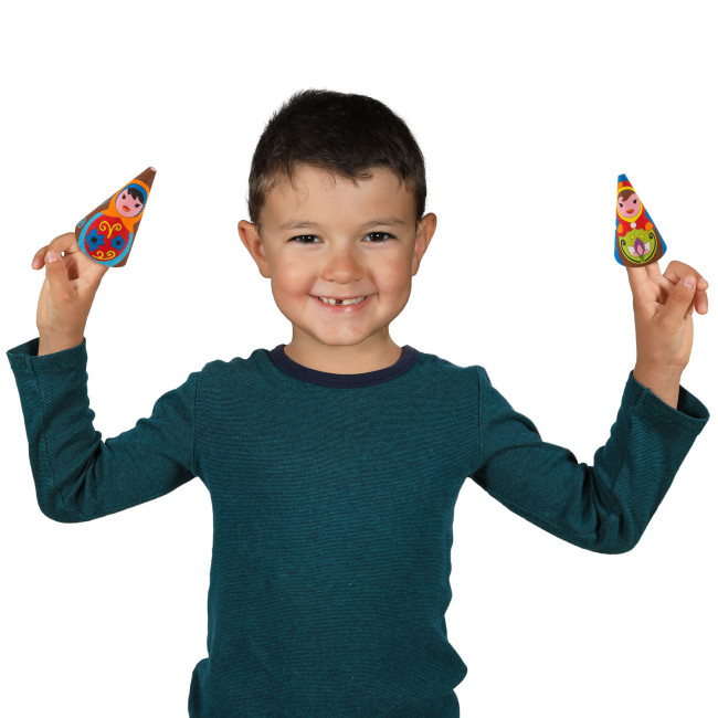 The kit consists of a jewel box and 3 ring holder cones, decorated with floral motifs and with the image of Matryoshka dolls to be colored with Sabbiarelli® sand and to be assembled.