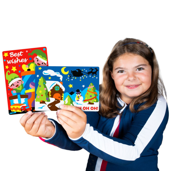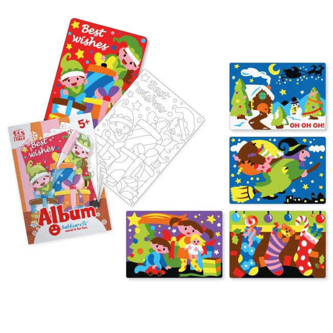 Ogni album contiene 5 disegni (15x20cm) pretagliati su carta adesiva contenenti disegni e cartoline natalizie da sabbiarellare.