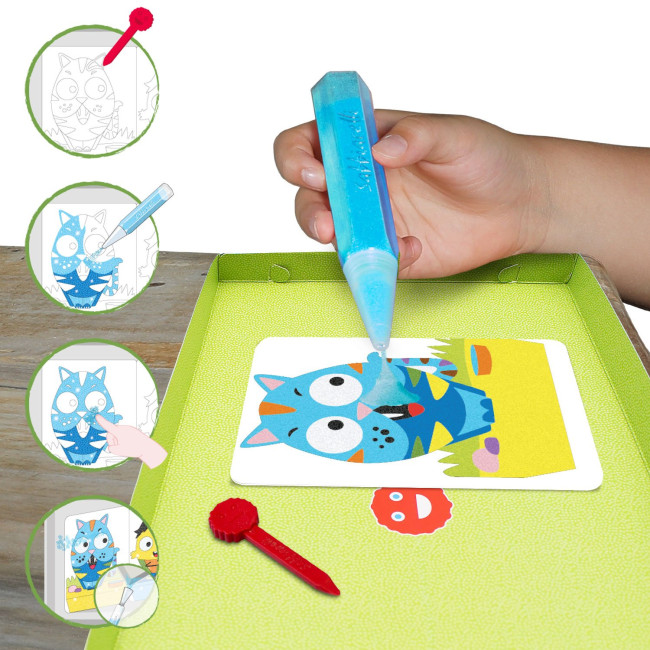 Grazie alle speciali penne Sabbiarelli, colorare con la sabbia è un'azione alla portata di tutti: i piccoli artisti possono liberare la loro creatività nella colorazione, seguendo l'esempio colore o scegliendo nuove combinazioni o ancora creando nuove sfumatore di colore mischiando tra loro le sabbie, senza sprechi.
