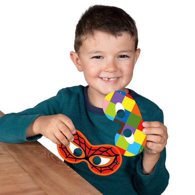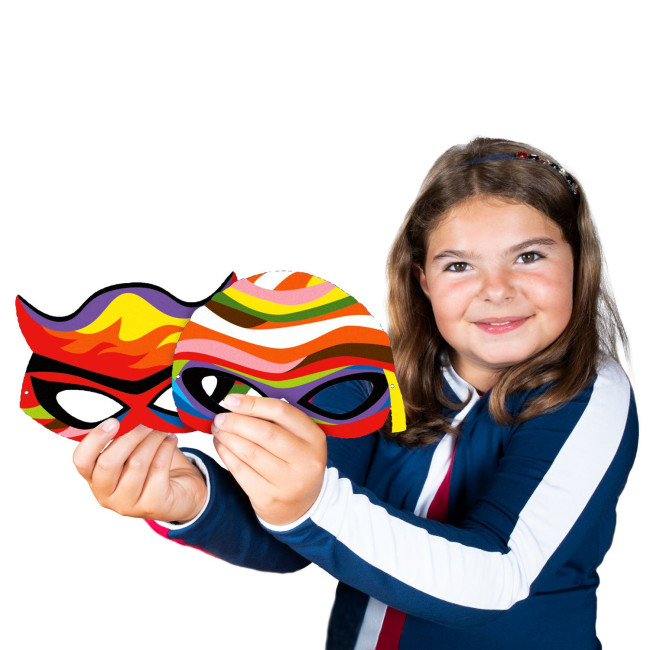 La Box "Tutti in maschera 5+" è pensata per chi vuole creare travestimenti originali e scintillanti e celebrare il Carnevale, ed è indicata per bambini dai 5 anni in su, per il numero di dettagli e la grandezza degli elementi da colorare. La Box contiene: