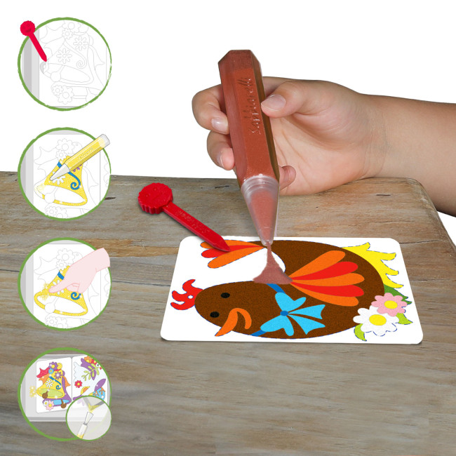 I disegni pretagliati stampati su fogli adesivi sono realizzati da un team di illustratori ben istruiti sulle caratteristiche che gli elaborati devono avere per far sì che l’esperienza di gioco dei bambini sia sempre positiva e soddisfacente.