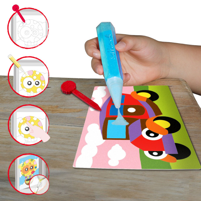 I disegni pretagliati stampati su fogli adesivi sono realizzati da un team di illustratori ben istruiti sulle caratteristiche che gli elaborati devono avere per far sì che l’esperienza di gioco dei bambini sia sempre positiva e soddisfacente.
