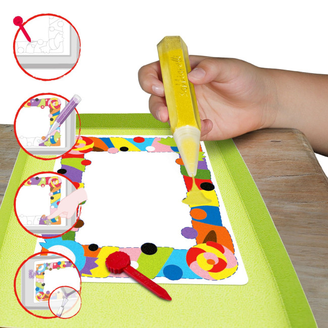 Grazie alle speciali penne Sabbiarelli, colorare con la sabbia è un'azione alla portata di tutti: i piccoli artisti possono liberare la loro creatività nella colorazione, seguendo l'esempio colore o scegliendo nuove combinazioni o ancora creando nuove sfumatore di colore mischiando tra loro le sabbie, senza sprechi.