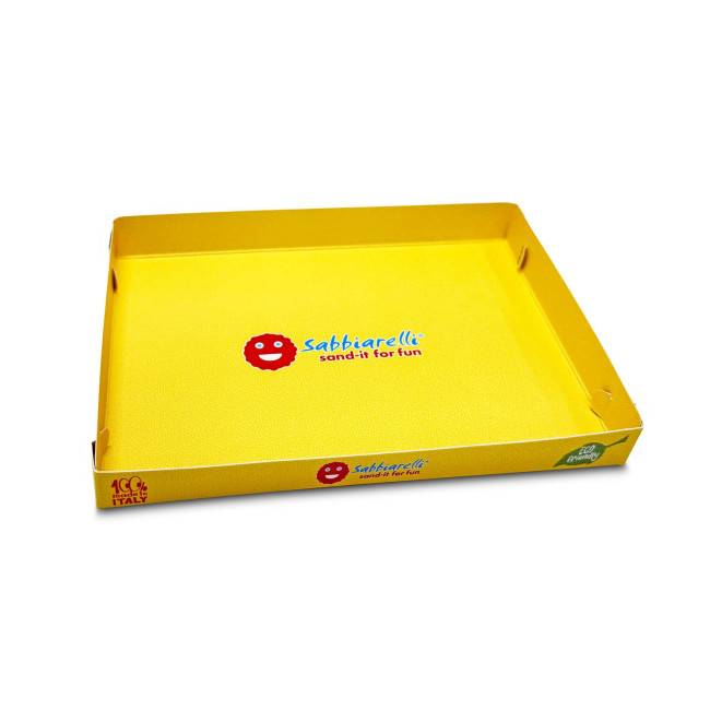 Il vassoio è un'ottima postazione di lavoro per le attività di sand painting. La sabbia raccolta può esser di volta in volta rimessa nelle penne Sabbiarelli oppure conservata a parte, come mix di colori, perfetto per gli sfondi.