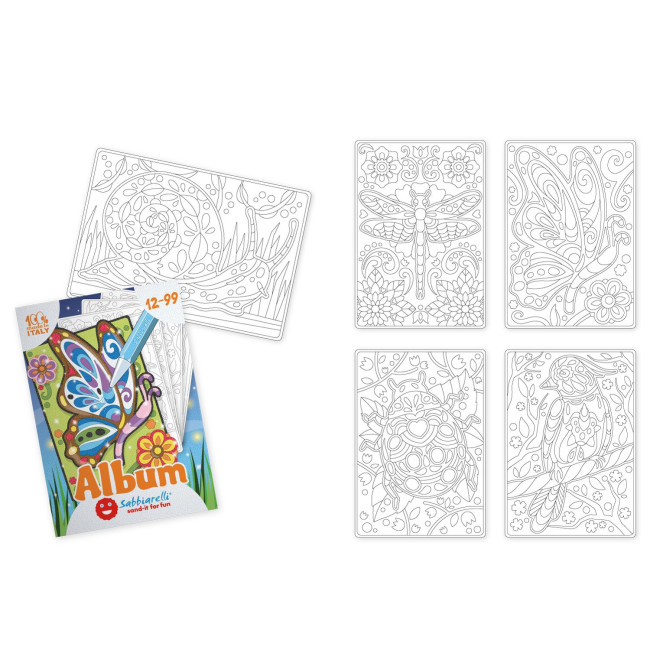Colorare con la sabbia è un’attività dalla quale anche gli adulti possono trarre grandi benefici per la salute fisica e mentale. Attraverso il sandpainting con i Sabbiarelli si allena la motricità manuale, perché si richiede di rimuovere la pellicola dai disegni usando lo spellicolino e di maneggiare le penne per dosare la sabbia quando si colora. Ma la stimolazione sensoriale è legata anche al tipo di pittura che caratterizza il sandpainting, cioè la pittura materica, fatta direttamente con le dita. La sensazione che si prova colorando con le dita, premendo i granelli di sabbia finissima per farli aderire bene agli inserti adesivi del disegno, è piacevole ed appagante. La speciale sabbia di marmo dei Sabbiarelli è morbida al tatto, e questa sua peculiarità la rende particolarmente adatta proprio per essere massaggiata con la mano, senza l’uso di pennelli. Vi sono poi altri aspetti positivi legati a questa speciale tecnica di colorazione. La sequenzialità delle operazioni richieste per colorare con la sabbia aiuta a recuperare la calma e a ridurre lo stress. La necessità di prestare di attenzione e concentrazione permette di interrompere il flusso di pensieri e di entrare in uno stato di benefico rilassamento. Infine, il sandpainting con i Sabbiarelli migliora l’autostima, perché implica un obiettivo e il suo raggiungimento è gratificante. I disegni colorati con la sabbia di marmo dei Sabbiarelli sono veri e propri quadri, perfetti grazie alla laseratura che incide i fogli in modo da poter colorare ogni singola parte del disegno senza sconfinare in quelle adiacenti e alla speciale sabbia luccicante dei Sabbiarelli, che proviene dal marmo bianco di Carrara ed è naturalmente scintillante. Con i Sabbiarelli il mondo della creatività e quello della meditazione trovano un punto di incontro ideale, sia per coltivare la propria vena artistica, che per staccarsi, anche solo per qualche ora, dai problemi della quotidianità.