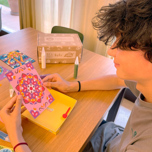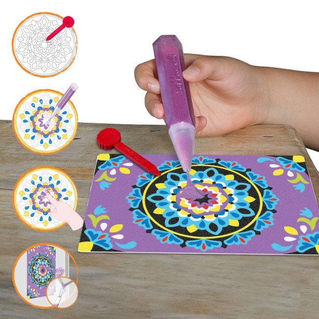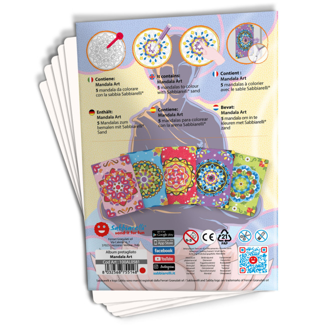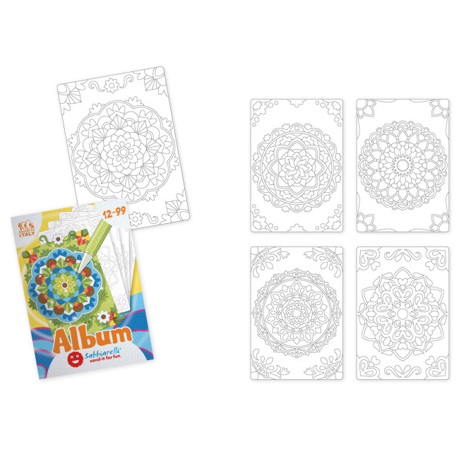 Colorare con la sabbia è un’attività dalla quale anche gli adulti possono trarre grandi benefici per la salute fisica e mentale. Attraverso il sandpainting con i Sabbiarelli si allena la motricità manuale, perché si richiede di rimuovere la pellicola dai disegni usando lo spellicolino e di maneggiare le penne per dosare la sabbia quando si colora. Ma la stimolazione sensoriale è legata anche al tipo di pittura che caratterizza il sandpainting, cioè la pittura materica, fatta direttamente con le dita. La sensazione che si prova colorando con le dita, premendo i granelli di sabbia finissima per farli aderire bene agli inserti adesivi del disegno, è piacevole ed appagante. La speciale sabbia di marmo dei Sabbiarelli è morbida al tatto, e questa sua peculiarità la rende particolarmente adatta proprio per essere massaggiata con la mano, senza l’uso di pennelli. Vi sono poi altri aspetti positivi legati a questa speciale tecnica di colorazione. La sequenzialità delle operazioni richieste per colorare con la sabbia aiuta a recuperare la calma e a ridurre lo stress. La necessità di prestare di attenzione e concentrazione permette di interrompere il flusso di pensieri e di entrare in uno stato di benefico rilassamento. Infine, il sandpainting con i Sabbiarelli migliora l’autostima, perché implica un obiettivo e il suo raggiungimento è gratificante. I disegni colorati con la sabbia di marmo dei Sabbiarelli sono veri e propri quadri, perfetti grazie alla laseratura che incide i fogli in modo da poter colorare ogni singola parte del disegno senza sconfinare in quelle adiacenti e alla speciale sabbia luccicante dei Sabbiarelli, che proviene dal marmo bianco di Carrara ed è naturalmente scintillante. Con i Sabbiarelli il mondo della creatività e quello della meditazione trovano un punto di incontro ideale, sia per coltivare la propria vena artistica, che per staccarsi, anche solo per qualche ora, dai problemi della quotidianità.
