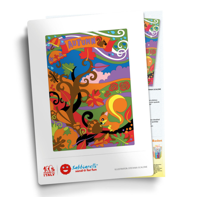 La stampa con laseratura viene fatta a diversi livelli di incisione per facilitare il distacco dei singoli elementi dai fogli adesivi e la rimozione della pellicola prima di colorare con la sabbia.