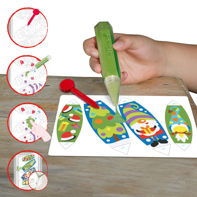 I disegni pretagliati stampati su fogli adesivi sono realizzati da un team di illustratori ben istruiti sulle caratteristiche che gli elaborati devono avere per far sì che l’esperienza di gioco dei bambini sia sempre positiva e soddisfacente.