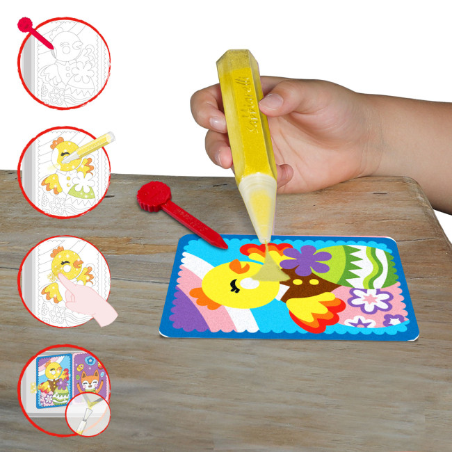 I disegni pretagliati stampati su fogli adesivi sono realizzati da un team di illustratori ben istruiti sulle caratteristiche che gli elaborati devono avere per far sì che l’esperienza di gioco dei bambini sia sempre positiva e soddisfacente.
