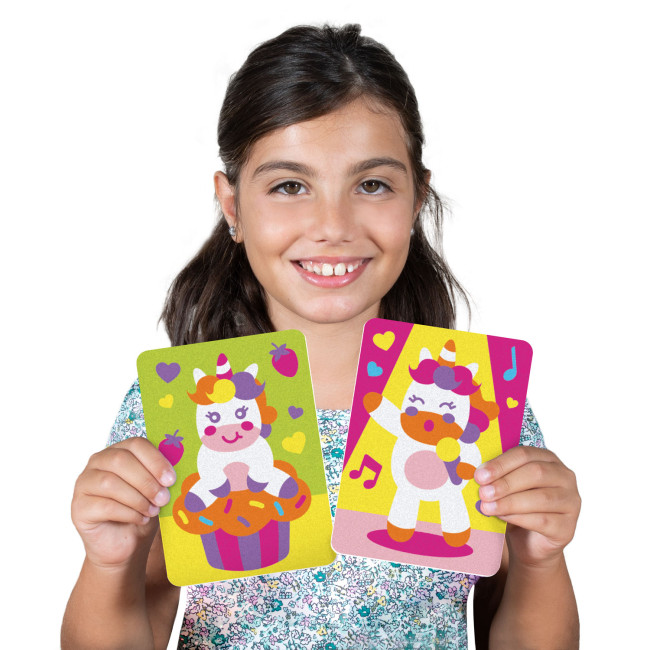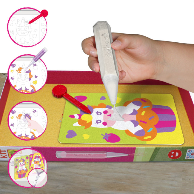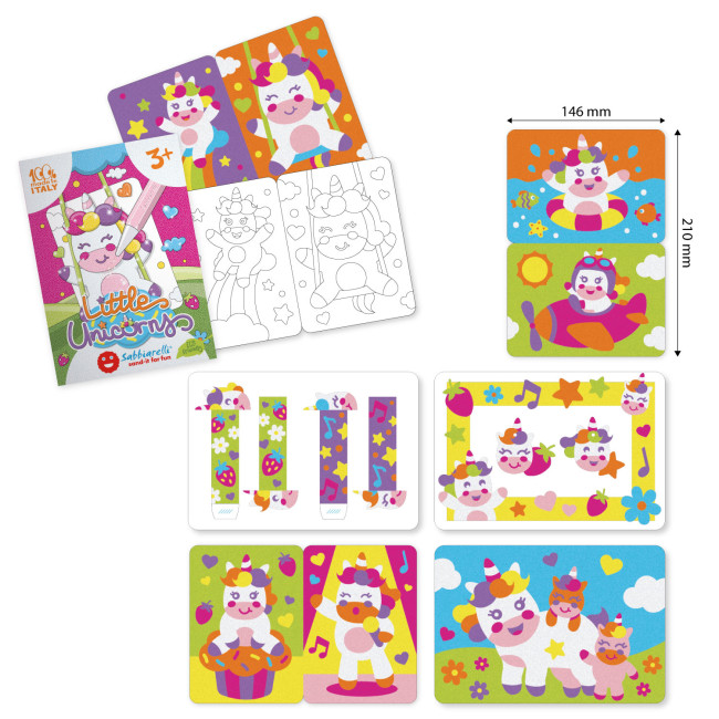 Grazie alle speciali penne Sabbiarelli, colorare con la sabbia è un'azione alla portata di tutti: i piccoli artisti possono liberare la loro creatività nella colorazione, seguendo l'esempio colore o scegliendo nuove combinazioni o ancora creando nuove sfumatore di colore mischiando tra loro le sabbie, senza sprechi.