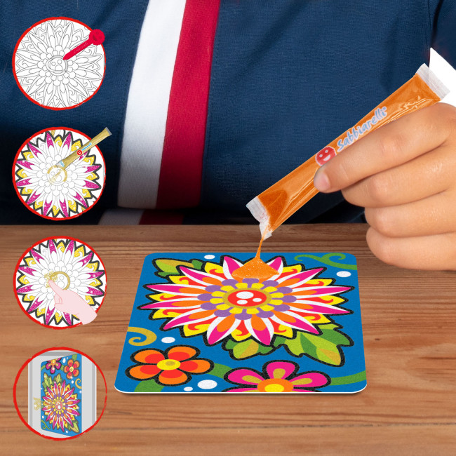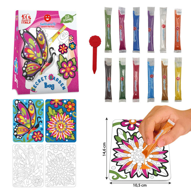 - Le bustine hanno un’apertura facilitata che permette di dosare la sabbia quando si colora, rendendo il gioco facile.