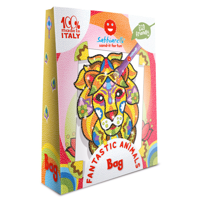 Sabbiarelli presenta le nuovissime Bag Sabbiarelli, i mini kit di sandpainting con 12 bustine di sabbia colorata e tanti soggetti diversi da colorare con la tecnica del sand painting. Ogni bag contiene 2 disegni adesivi, uno spellicolino e 12 bustine di sabbia scintillante.