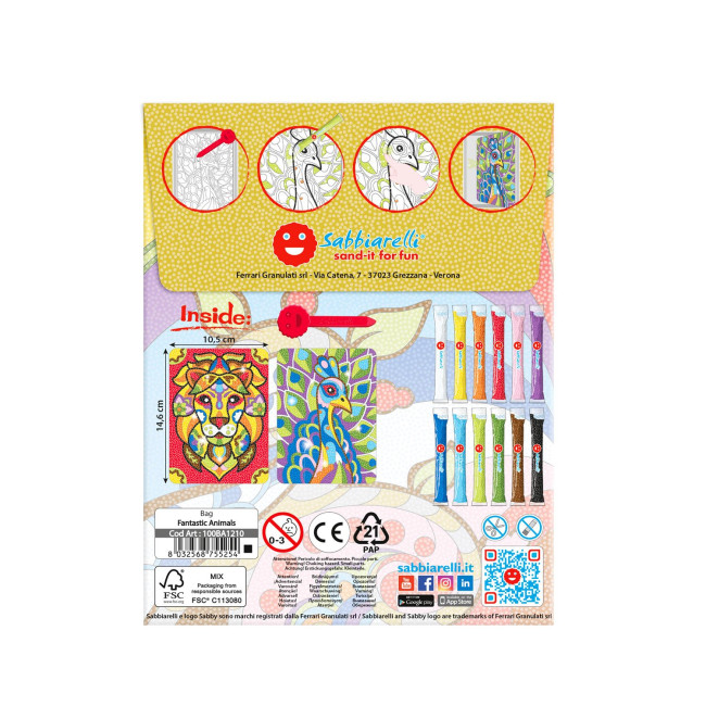 - Le bustine hanno un’apertura facilitata che permette di dosare la sabbia quando si colora, rendendo il gioco facile.