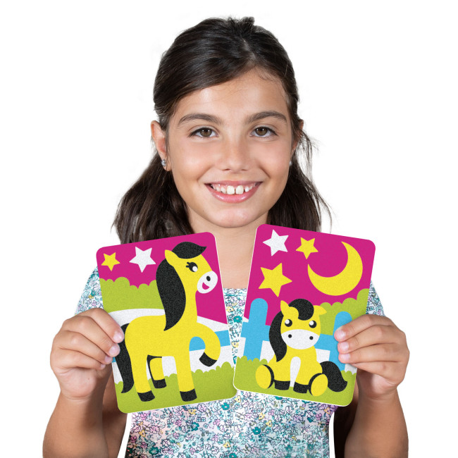 Grazie alle speciali penne Sabbiarelli, colorare con la sabbia è un'azione alla portata di tutti: i piccoli artisti possono liberare la loro creatività nella colorazione, seguendo l'esempio colore o scegliendo nuove combinazioni o ancora creando nuove sfumatore di colore mischiando tra loro le sabbie, senza sprechi.