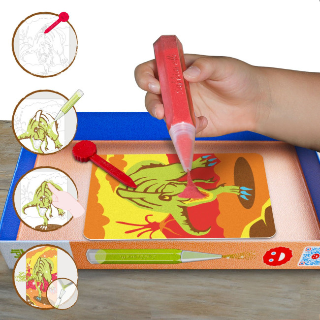 Grazie alle speciali penne Sabbiarelli, colorare con la sabbia è un'azione alla portata di tutti: i piccoli artisti possono liberare la loro creatività nella colorazione, seguendo l'esempio colore o scegliendo nuove combinazioni o ancora creando nuove sfumatore di colore mischiando tra loro le sabbie, senza sprechi.