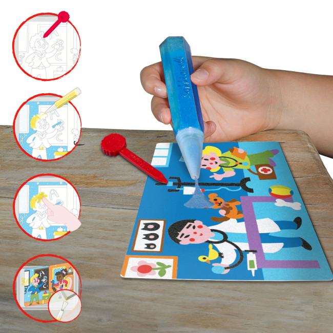 I disegni pretagliati stampati su fogli adesivi sono realizzati da un team di illustratori ben istruiti sulle caratteristiche che gli elaborati devono avere per far sì che l’esperienza di gioco dei bambini sia sempre positiva e soddisfacente.
