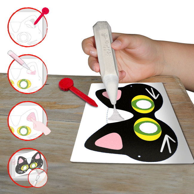 I disegni pretagliati stampati su fogli adesivi sono realizzati da un team di illustratori ben istruiti sulle caratteristiche che gli elaborati devono avere per far sì che l’esperienza di gioco dei bambini sia sempre positiva e soddisfacente.