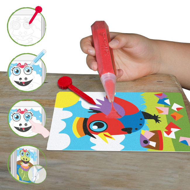 I disegni pretagliati stampati su fogli adesivi sono realizzati da un team di illustratori ben istruiti sulle caratteristiche che gli elaborati devono avere per far sì che l’esperienza di gioco dei bambini sia sempre positiva e soddisfacente.