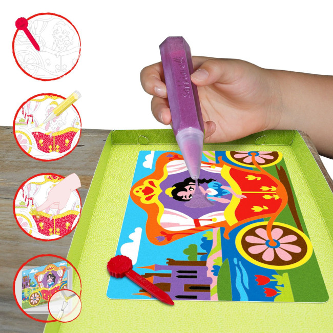 Grazie alle speciali penne Sabbiarelli, colorare con la sabbia è un'azione alla portata di tutti: i piccoli artisti possono liberare la loro creatività nella colorazione, seguendo l'esempio colore o scegliendo nuove combinazioni o ancora creando nuove sfumatore di colore mischiando tra loro le sabbie, senza sprechi.